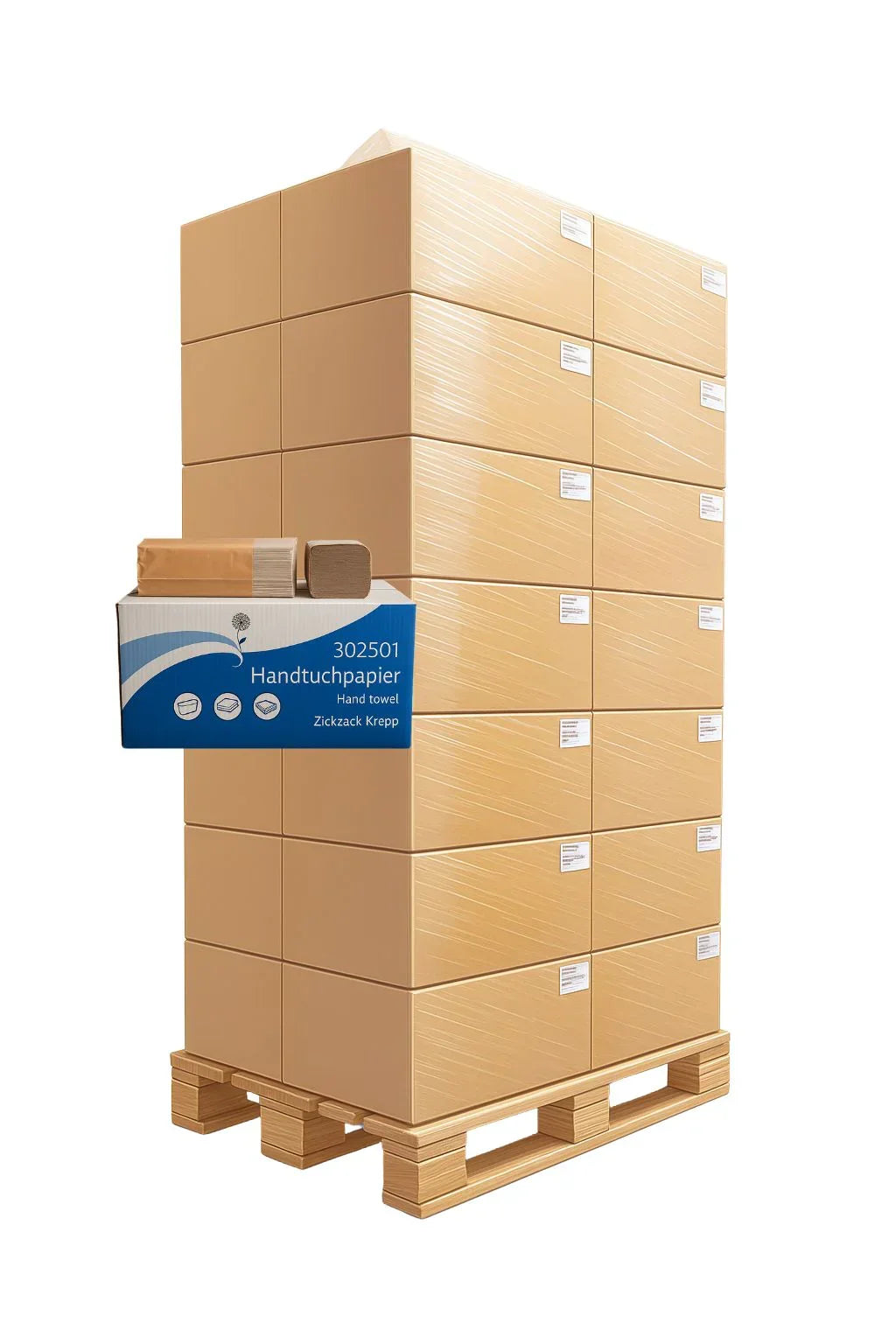 Handtuchpapier 1-lagig, 5000 Blatt - 32 Kartons pro Palette